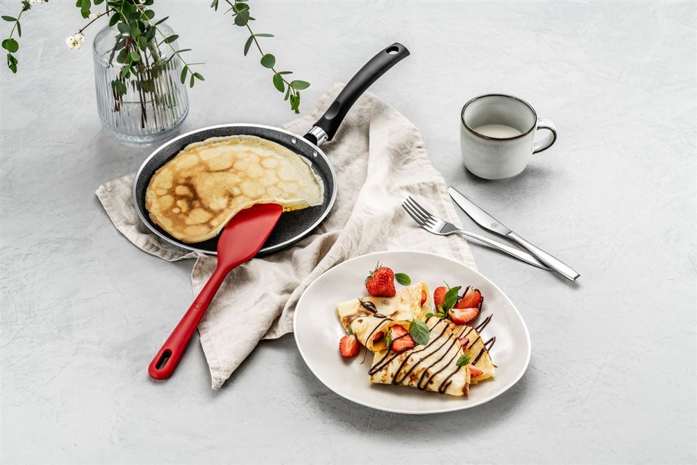 Mit dem Teigschaber von BALLARINI wirst du dir vorkommen wie der Chef einer echten italienischen `pasticceria´. Der 28,5 cm lange Küchenhelfer aus unserer Serie Rosso streicht mühelos Teig, Cremes oder Füllungen glattideal also für köstliche Torten oder Desserts wie Tiramisu. Und natürlich schabt die Spatula auch den letzten Rest Teig aus deiner Schüssel, denn das anpassungsfähige Material aus hochwertigem Silikon passt sich jeder Form perfekt an. Dabei ist das Silikon sowohl lebensmittelecht als auch hitzebeständig bis 230 °C. Für die Benutzung im Backofen selbst oder in der Mikrowelle eignet es sich allerdings nicht. Ist die Arbeit erledigt? Dann geht die Reinigung super `semplice´. Denn der Küchenschaber ist spülmaschinengeeignet. Sein ergonomischer Griff liegt stets rutschfest und komfortabel in deiner Hand. Nicht nur die Qualität, sondern auch die Optik zeugt von großer Klasse: Das Design wurde vom Mailänder Studio Matteo Thun Antonio Rodriguez entwickelt. Der rote Teigschaber macht sich somit auch dank der praktischen Aufhängungsöse am Griffende toll als dekoratives Element an deiner Küchenleiste.